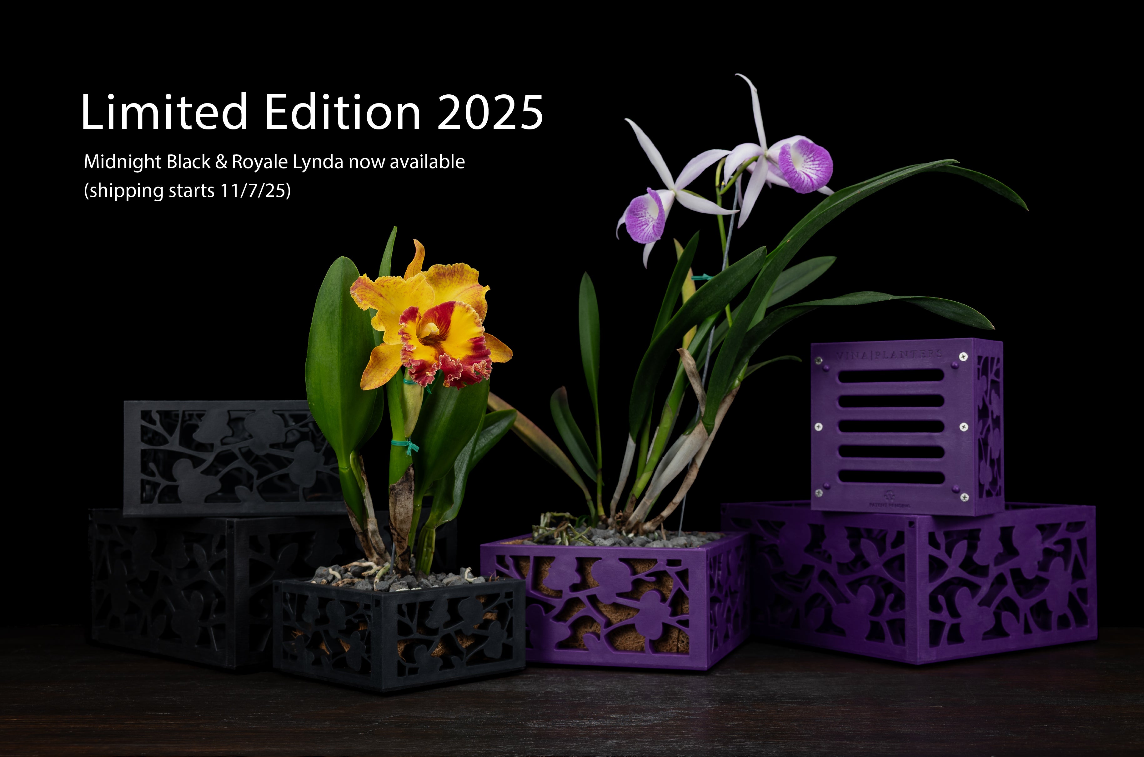 Injection molded manufacturing allows easy disassembly for repotting and reuse, UV treated for longevity outdoors, recessed hanger eyelets, tabletop feet for root protection and aeration, and each Vina Planter comes with a