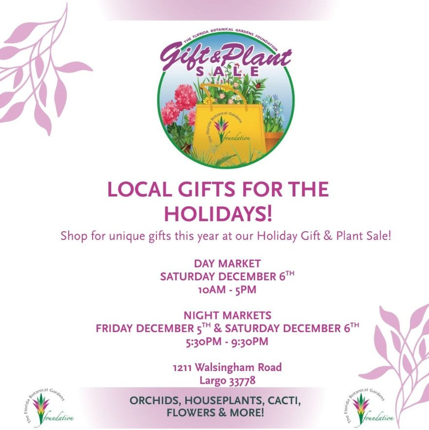 The Gift & Plant sale night markets run as part of Holiday Lights in the Gardens. The sales is located next to Creative Pinellas off the Walsingham Road parking area.