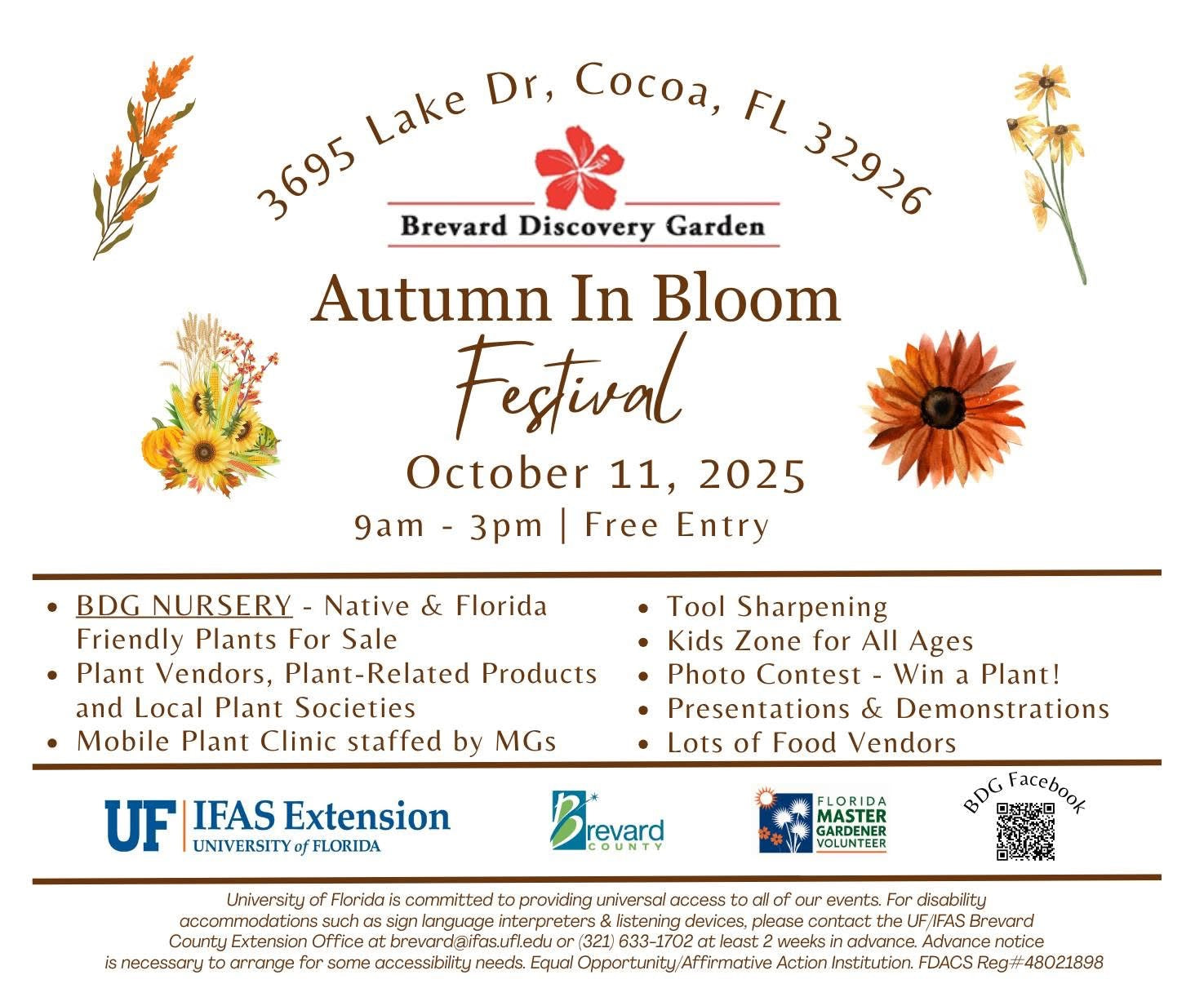 11: Unlock your inner gardener at the Brevard Discovery Garden Autumn in Bloom Festival on Saturday, October 11, 2025, from 9 am to 3 pm!